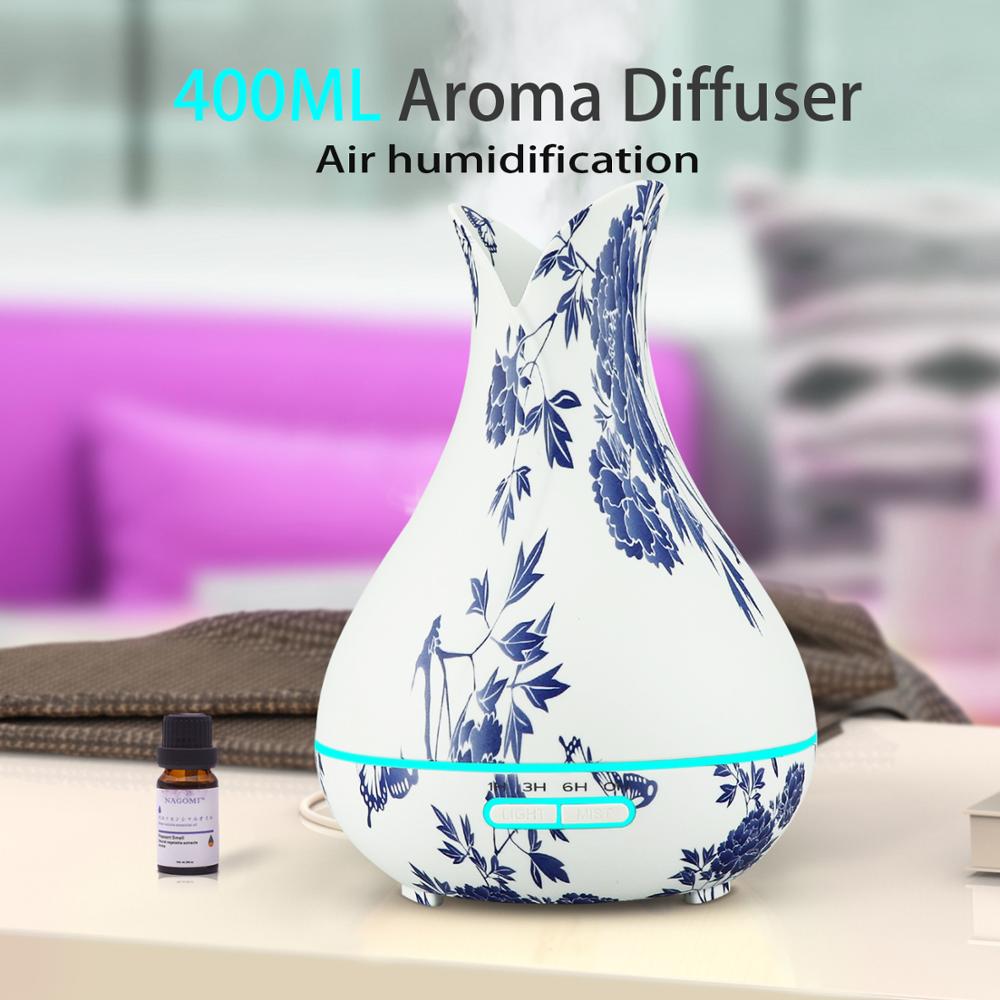 Essential Oil Diffuser Humidifier 400ml Ultrasonic Cool Mist Aroma With 4 Colorful Light Essential Wood Grain Finish With Timer