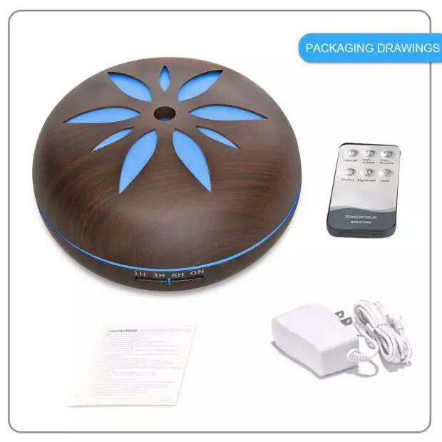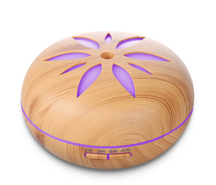 Wood Grain Essential Oil Diffuser with Flower Pattern, 500ml Capacity Censer Humidifier