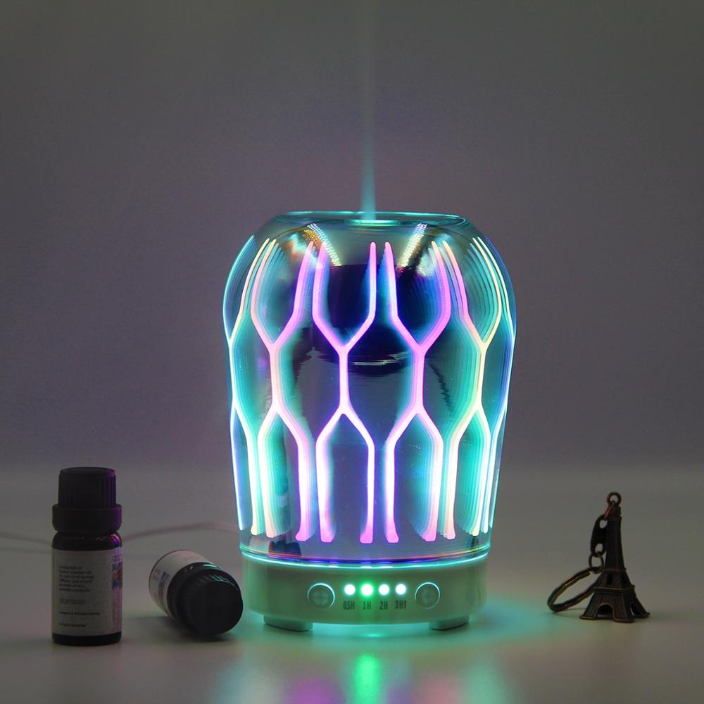 3D Oil Diffuser Glass Cool Mist Home 100ml Humidifier with 7 Color Led Change