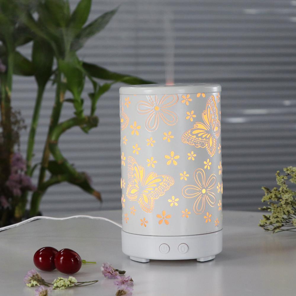 butterfly shape 3D 100 ml Metal Aromatherapy Oil Diffuser Ultrasonic Air Humidifier with Colorful LED Night Aroma Lamp Diffuser