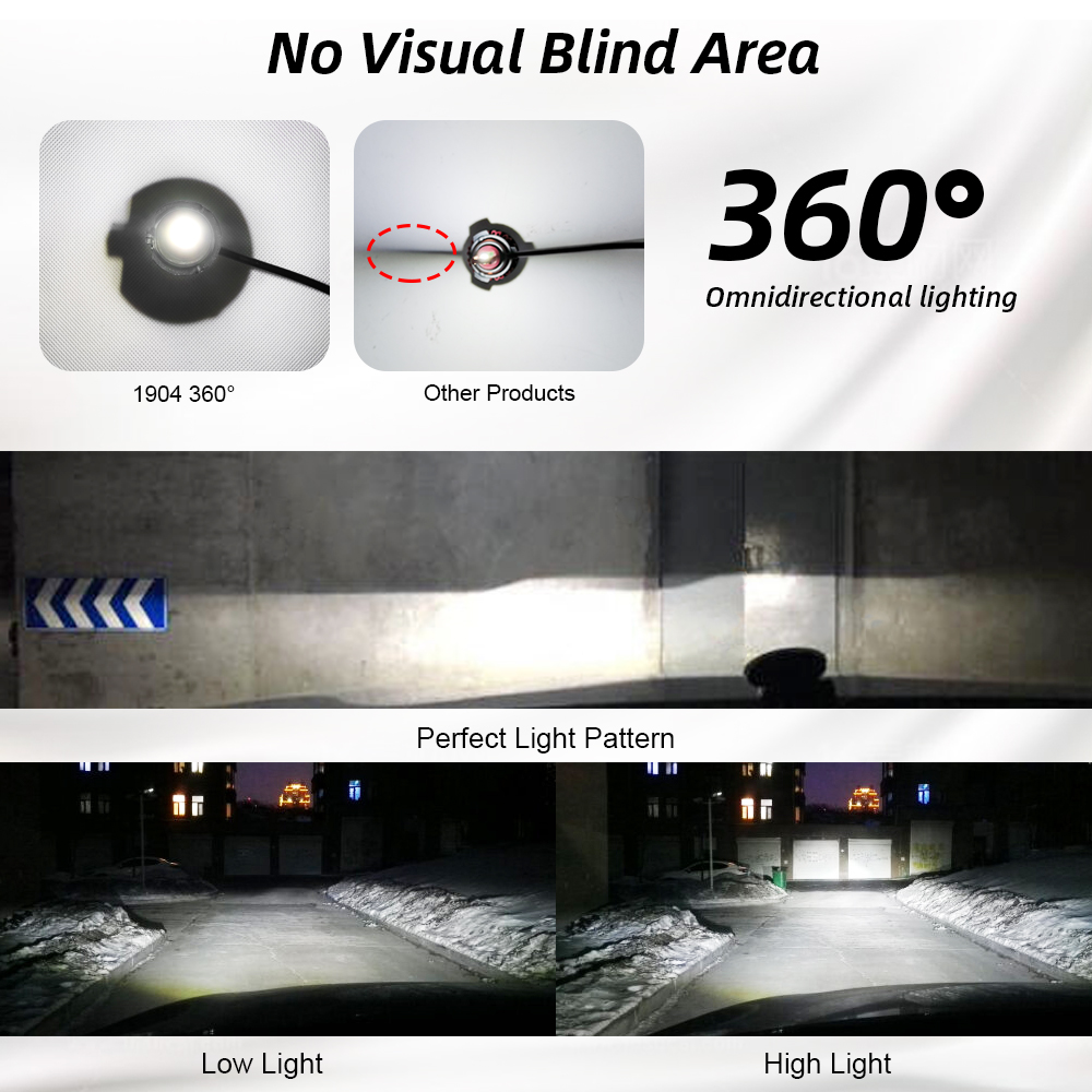 1. High brightness: The latest CSP with 6000k cold whithe LED chip, 200% brighter than the existing halogen headlights. Advanced technology ensures perfect beam patterns without any black spots or fog lights,