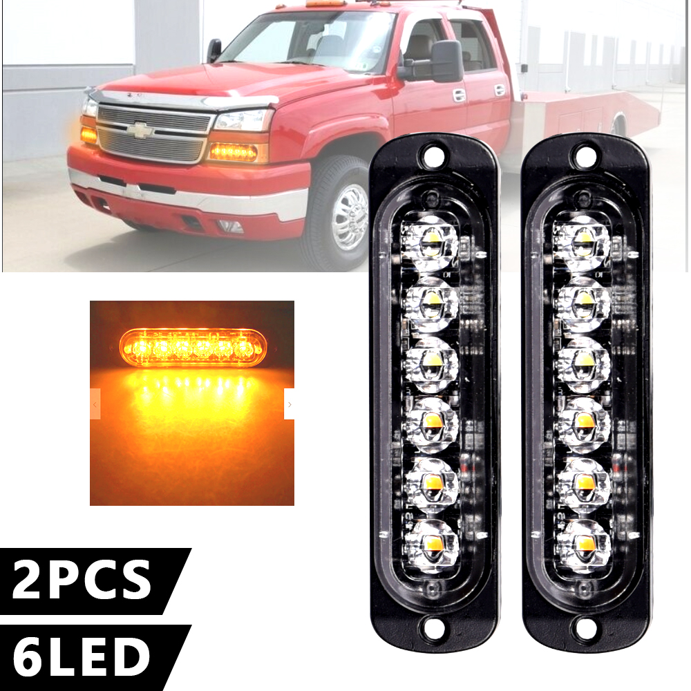 Car 6 led amber flashing light bar 12w car strobe warning lamp