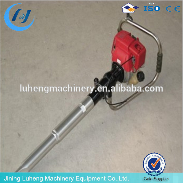 This machine is mainly composed of gasoline engine, the vibration damping device, a transmission axis, a vibration body and hand, constitute a complete independence of handheld tamping machine, neither the long cables, no heavy soft shaft, compact and reasonable structure, easy to use.
