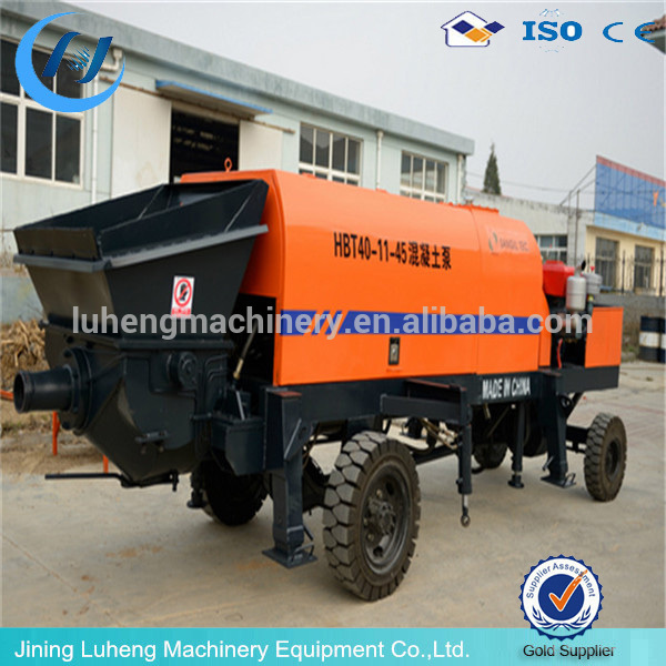HBT40 mobile portable concrete pump series are excellent modernized concrete machinery developed with aid of advanced technology. They are high tech concrete machine which are incorportated with international advanced technology and experiences in designing to replace the traditional way to lift the concrete by labor force.they adopt the diesel engine drive and motor drive S valve pump and gate valve pump with excellent techinical performance, high standard configuration and high reliability