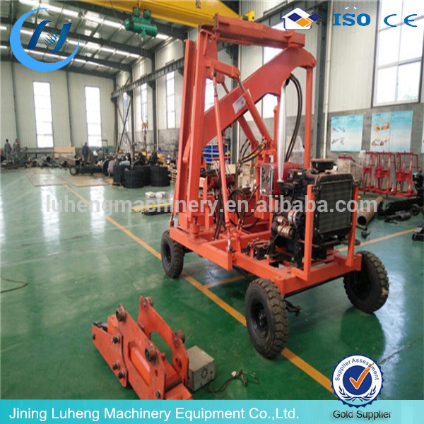 2 The tow bar is connected with the chassis. In using a tow truck or trailer to tow the machine to the work site, first it is needed to lay down the tow bar and disengage the clutch. The up and down, longitudinal and transverse shift, horizontal slide of the guide rail are controlled through hydraulic system.