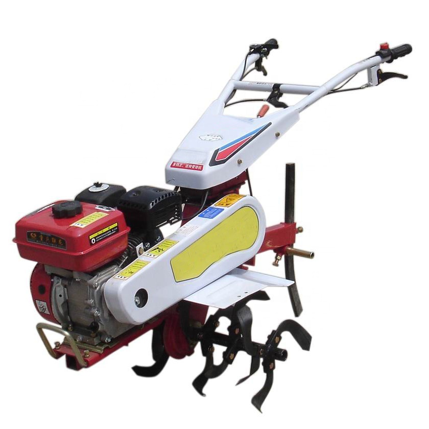The mini tiller is small in size and compact in structure. It is especially suitable for small paddy fields and dry field rotary tillage operations. The handrails are adjusted in height by 4 steps and horizontally rotated by 180 degrees. High and low gears are flexible and convenient to operate. Double shaft drive, front axle Work, rear axle walking, safe and reliable. Mainly used in mountain terraces, hilly dry fields, southern paddy fields, vegetable melons and fruit greenhouses, orchard rotary tillage, cultivating and weeding.