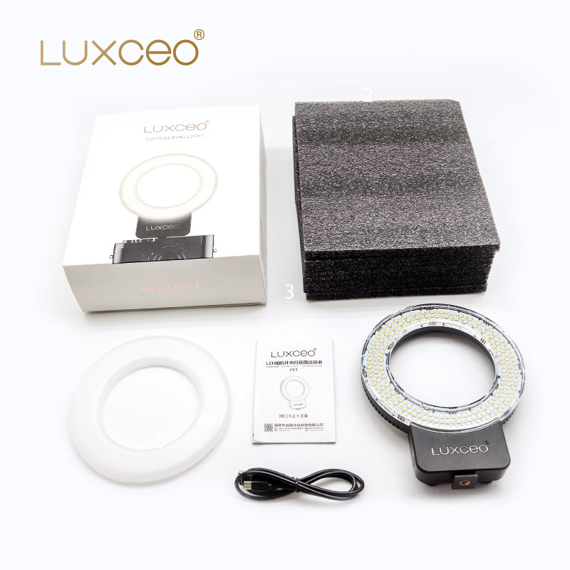 Photographic Lighting Black Stepless Dimming 3000K-6000K Rechargeable Lightweight Photo Ring Light for Camera