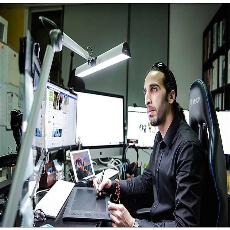 UYLED touch switch aluminum+metal reading silver black long arm table lamp with clamp