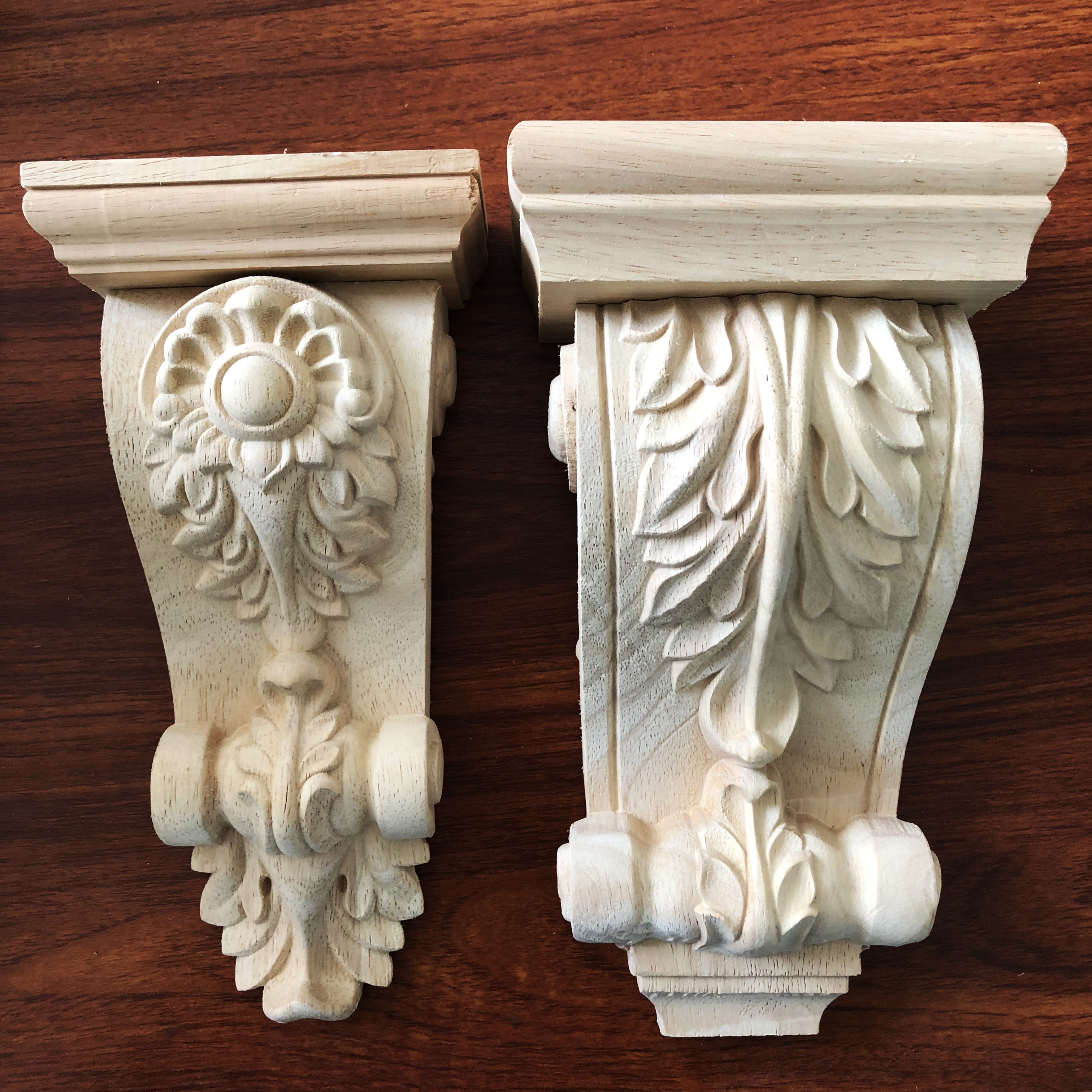 - Decorative Carved Unpainted Wood Floral Roman Corbel