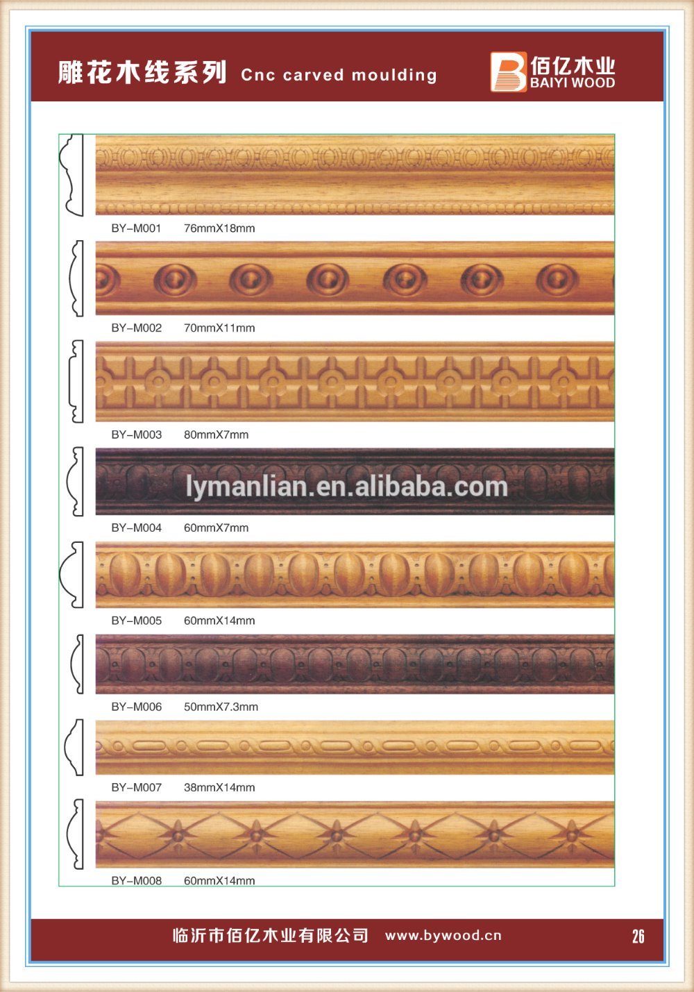 Linyi Baiyi Wood Co.Ltd(formerly Linyi Zhenhua Wood Co.Ltd),located in Zaogoutou Industrial Park, Lanshan District,Linyi city, was founded in 1990. It is an integrated company with R&D, production, processing, sales and international trading services. With more than 20 years efforts, the company has research and developed more than thousands of designs. The introduction of the Automatic Computer Numerical control engraving machine, with advanced equipment, makes the designs possess reliable quality, strong sense of three-dimensional linear and elegance, all this make us the leading company in the field of wood industry.