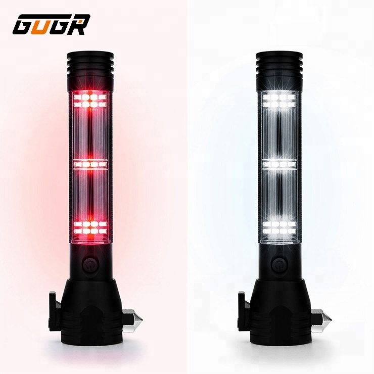 Solar Led Flashlight USB Rechargeable Safe Hammer Cutting Knife Torch Light