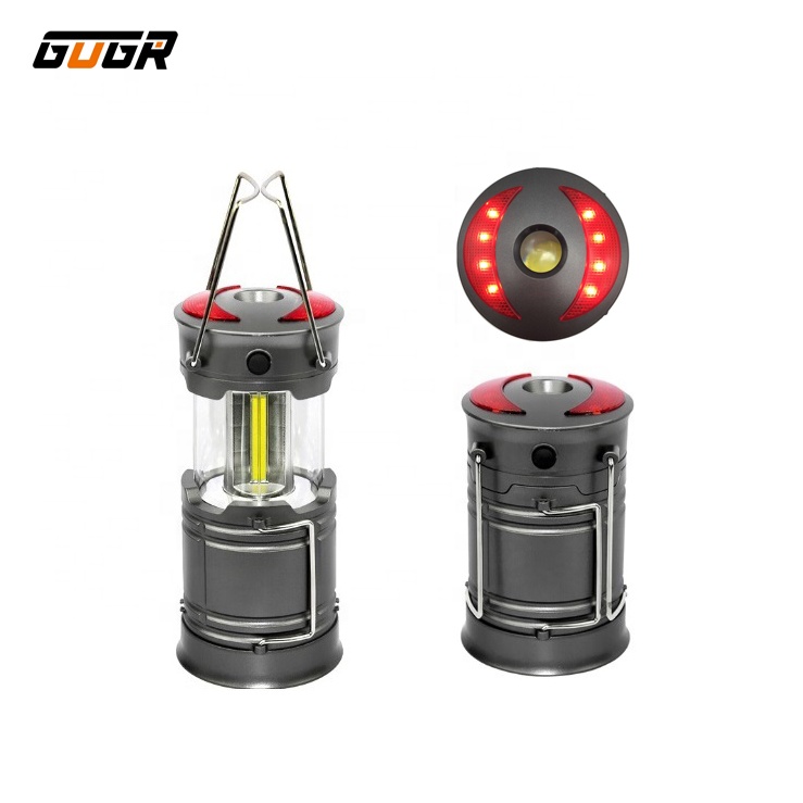 Factory Supply 3AA Dry Batteries Magnetic Outdoor Emergency Torch Warning Red COB Folding LED Camping Lantern