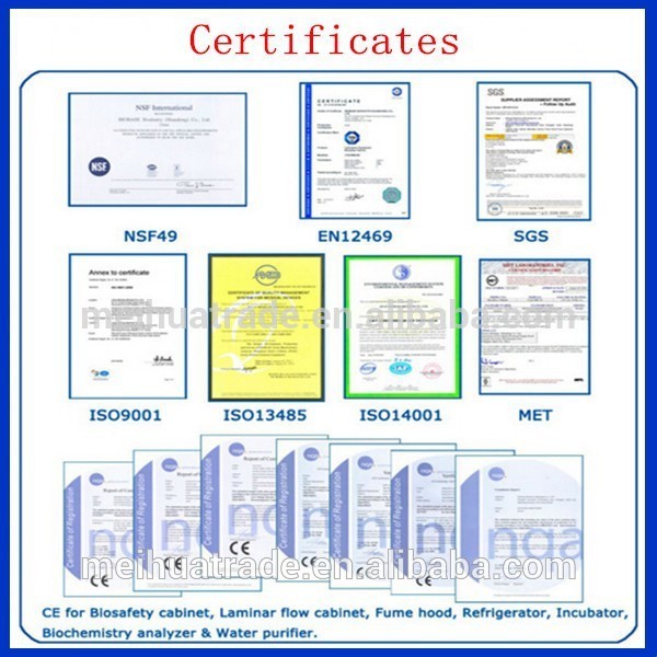 We have ISO9001 quality management system; ISO14001 environmental managemnet system, ISO13485, CE mark, MET and NAF49 certificate.