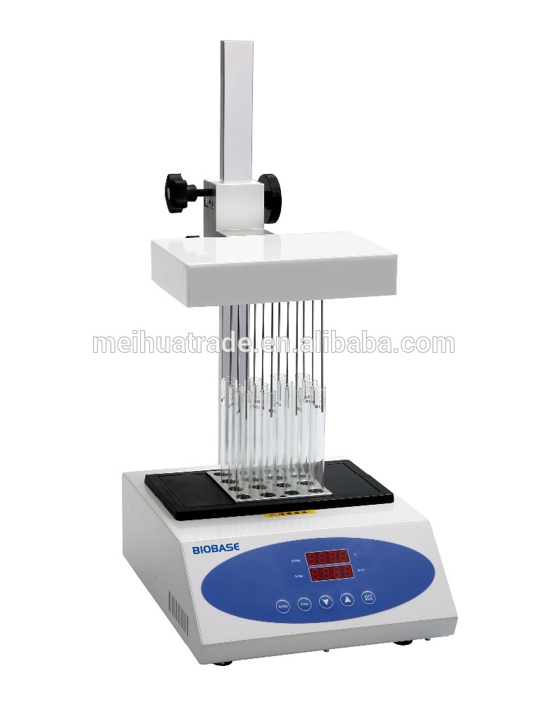 It consists of a base and stand assembly, sample holder and gas distribution system. Test tubes are held in a bolck. The gas at 5 to 10 psig passes through the distribution manifold. Depending on the test-tube size and solvent volume they can be individually raised or lowered to the correct height. Needles or glass pipets blow gas onto the surface of the solution resulting in rapid evaporation of the solvent. All materials used are laboratory quality and can withstand contact with organic solvents. Acid resistant models are available for corrosive application