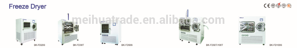 2.The machine is cascade refrigeration technology, famous brand compressor which is low noise, large cooling capacity and high capacity of water capture to reduce the time of freeze drying.