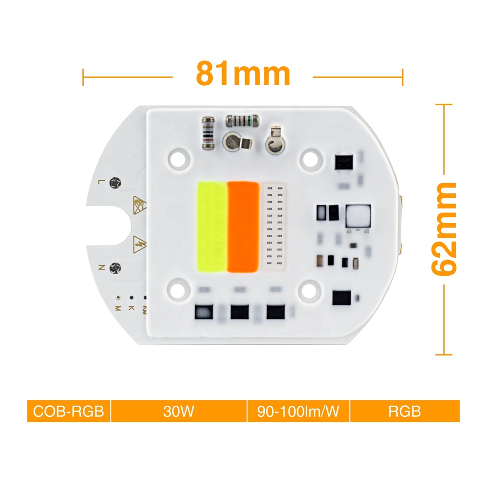 220V 30W LED Chips Automatic RGB Color Changing Cob Square Led chip For Street Square Outdoor Lighting