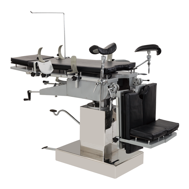 The rise and drop of operating table was handled by pedaling the oil pump, other various movements were handled by the mechanical transmission heads.