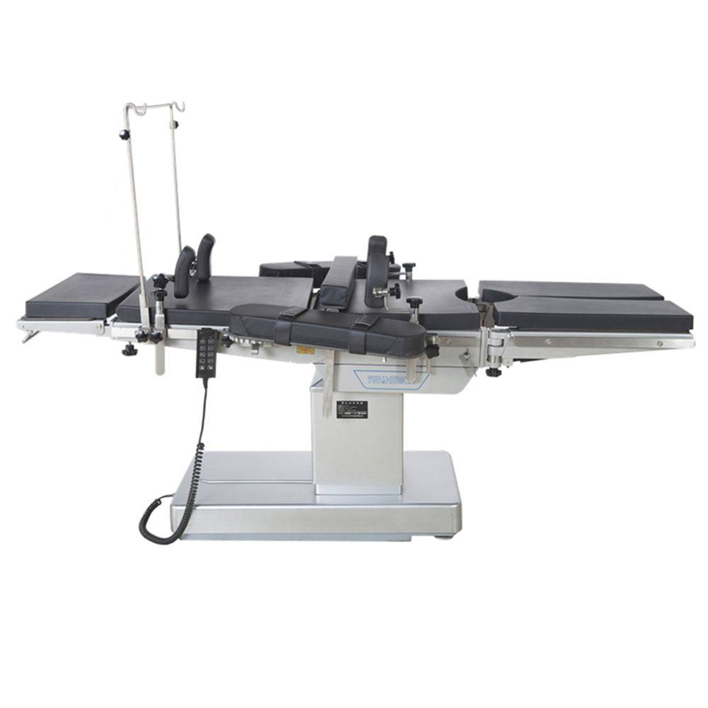 This type operating table is suitable for operation of any part of human body. Besides all the functions of multi-purpose operating table, it has the unique advantages of its own. For example, the leg panel can be disassembled and easily adjusted which is excellent for urology operation; the table board can be translated by a great degree and the high strength transparent board is adopted on the table panel, which is very convenient for X ray examination; the back panel can be upforward folded,which can overcome the defect caused by translation. All the movement of the table is controlled by electric drive pusher with safty and reliability. This operating table can be matched up with the osteology support especially for C-arm.