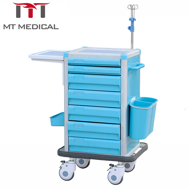High quality ABS plastic multifunction emergency medical trolley with four castors