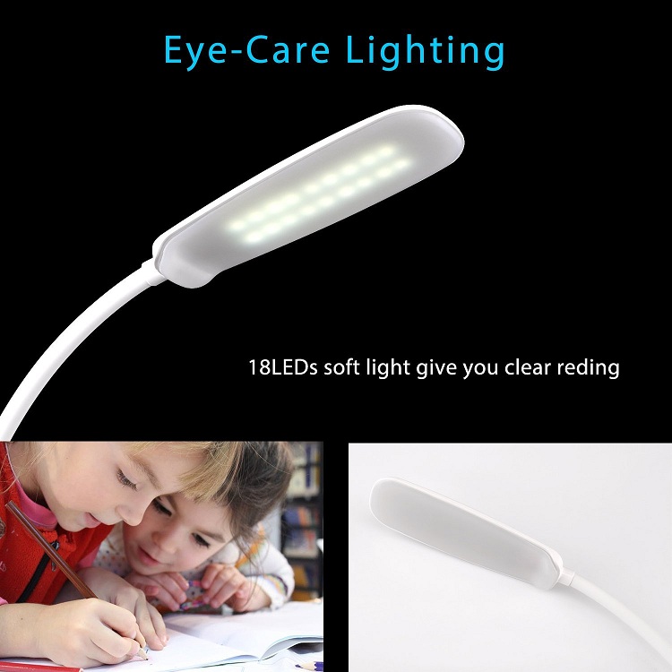 - 18 LED Book light,Clip Rechargeable Desk Lamp with 3 Levels Brightness