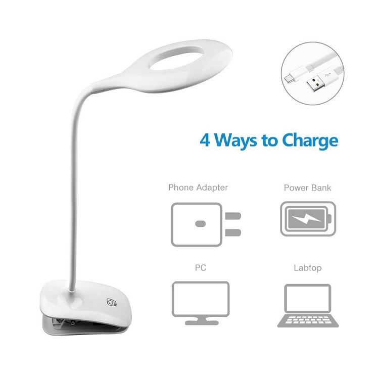 Goldmore USB Rechargeable LED Desk Lamp LED Cilp Reading Light Touch Table Lamp for Headboard and Bedroom