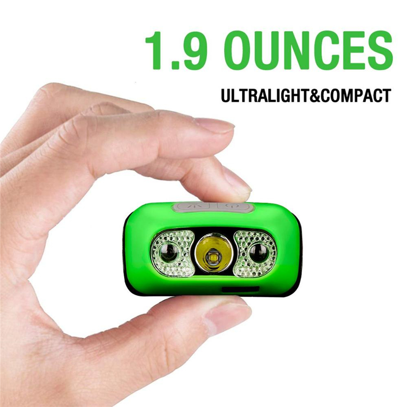 Name:led headlamp Material: ABS Color: white, black, green Size: 6.3*4.45*4.01cm Weight: 60g Lighting mode: high-low-2red led flash Battery: 1200mah battery