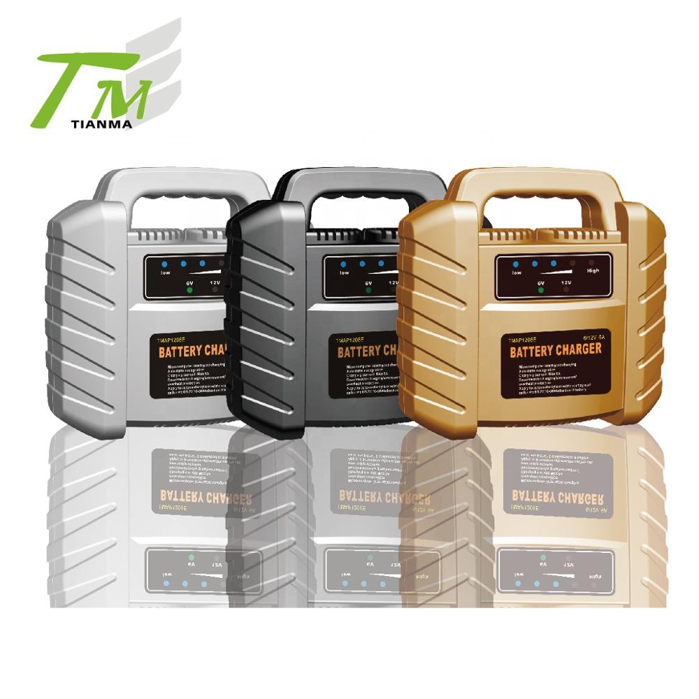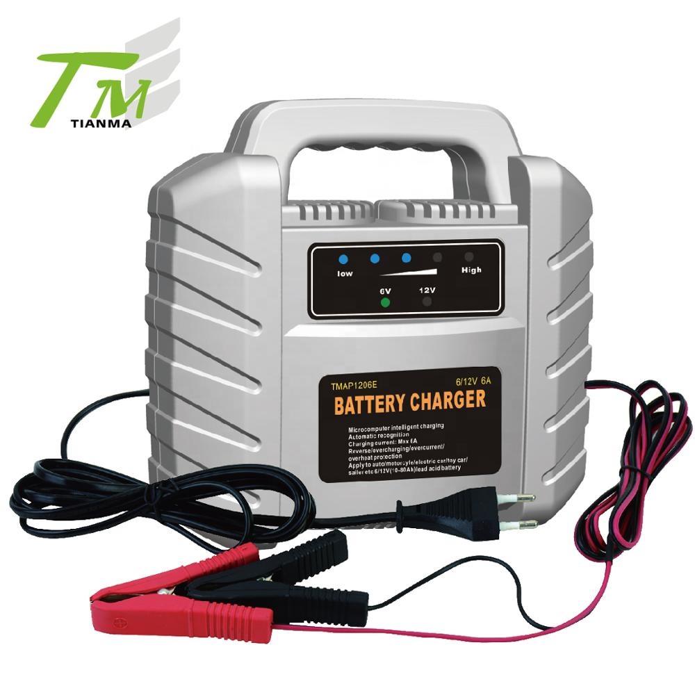 TMAP-1206FSK | Microcomputer intelligent charging control Automatic recognition Charged/Reverse/over current/overheat protection Voltage input: AC 110V/230V output: DC 6V/12V,4.2A Charging current: 4A max Digital display overloadingt protection 1.4m charging cable / 1.7m power cord Product Size: 190*190*90mm | Color box :200*200*100mm 20pcs/ctn Means/ctn:42*42*52cm GW/NW:13/12kg 20"Q= 290ctns =5800pcs 40"Q= 620ctns =12400pcs |