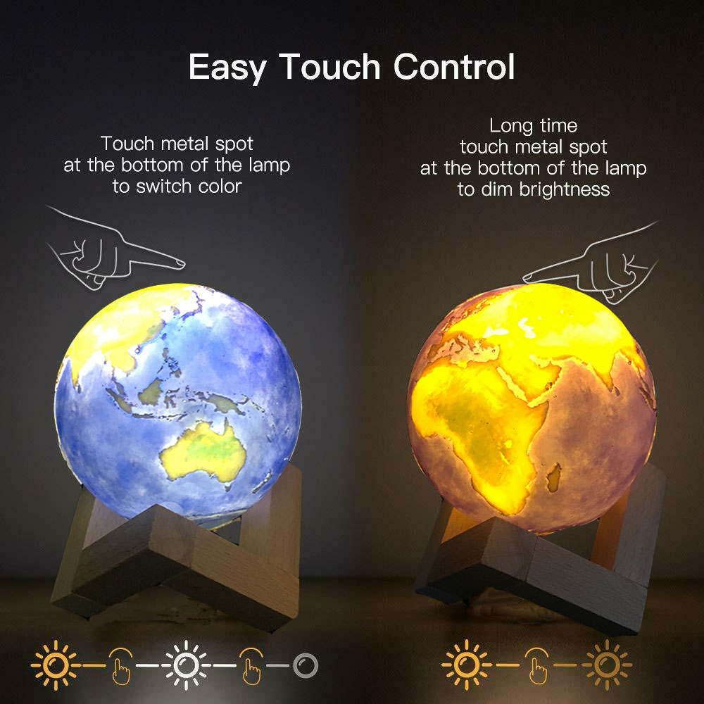 Rechargeable LED Moon Lamp 3D Print Touch Switch Eight Planets Ball Night Light For Children Gift