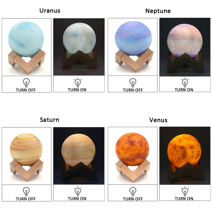 2019 New Creative LED Moon Lamp 3D Brightness Adjustable Eight Planets Ball Night Light For Kids Gift