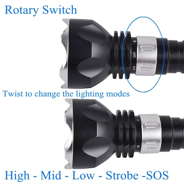 Battery: 2pcs 18650 li-ion rechargeable battery, Long lighting period
