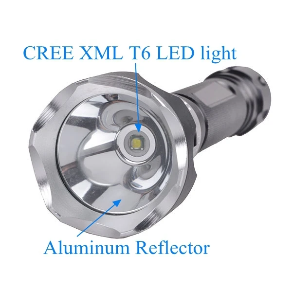 LED Source: 10W CREE XML T6 chip, more than 1000lm, with aluminum reflector and ultra clear anti-scratch lens
