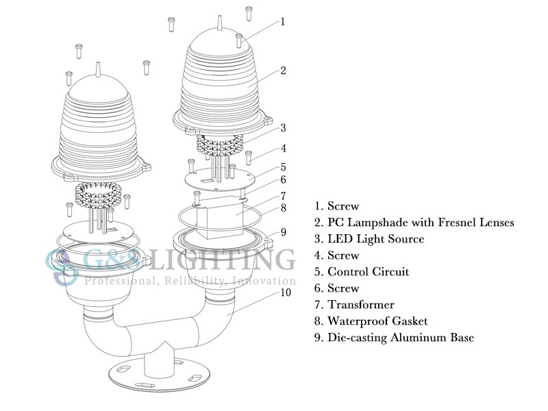 LED FAA Low intensity L810 Dual Aviation Obstruction Light for towers Base adopts metal stoving varnish. Light source adopt with independent research and development dedicated LED chip, which have the specific of high light intensity, low power consumption and long service life. Lampshade adopt with PC material, it can resist corrosion, anti-UV, anti-shock.