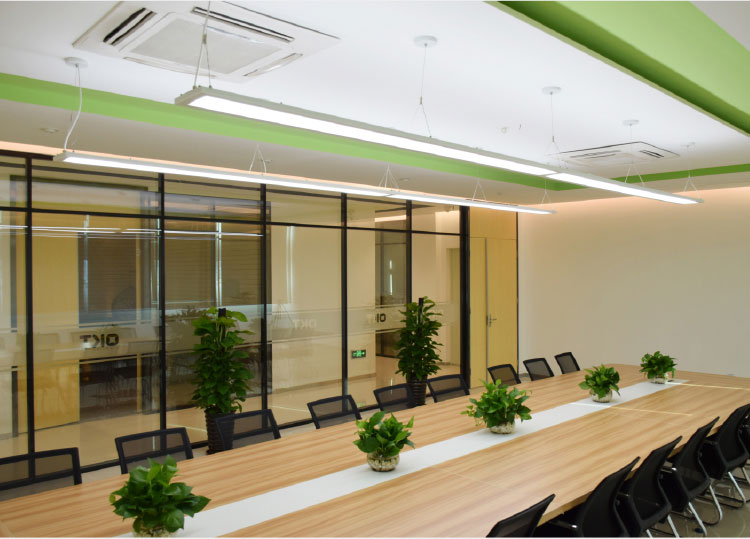 The suspended Up/down LED luminaire is an architectural lighting solution for commercial and public places. The unique design is nearly transparent when off and create a harmonious atmosphere when on, with 55% Downlight and 45% Uplight distribution. The Panels are certificated by ETL and UL, and support 0~10V dimming and step dimming.