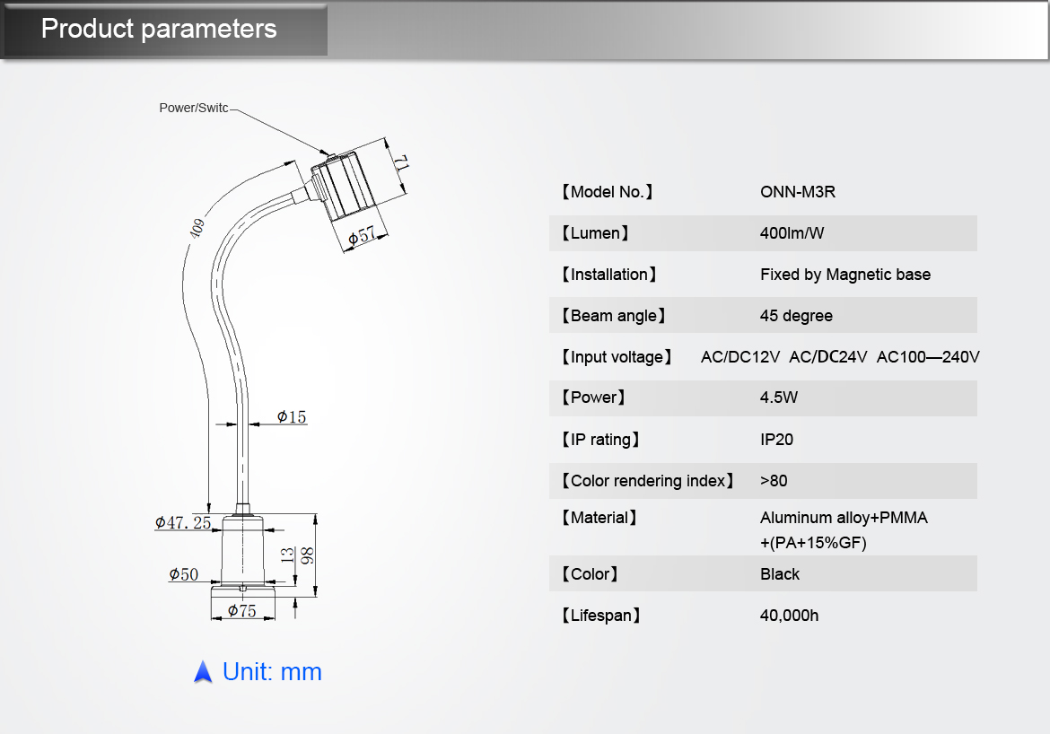 - Lamp Luminous Efficiency(lm/w):