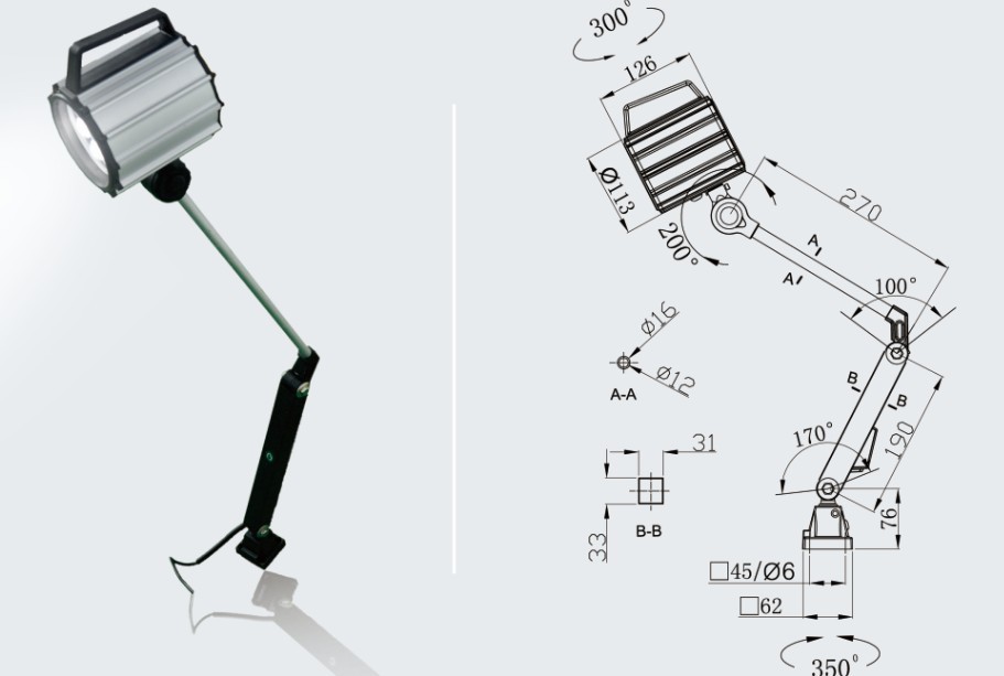 Model M2 24V 220V IP65 good quality long arm led machine work light