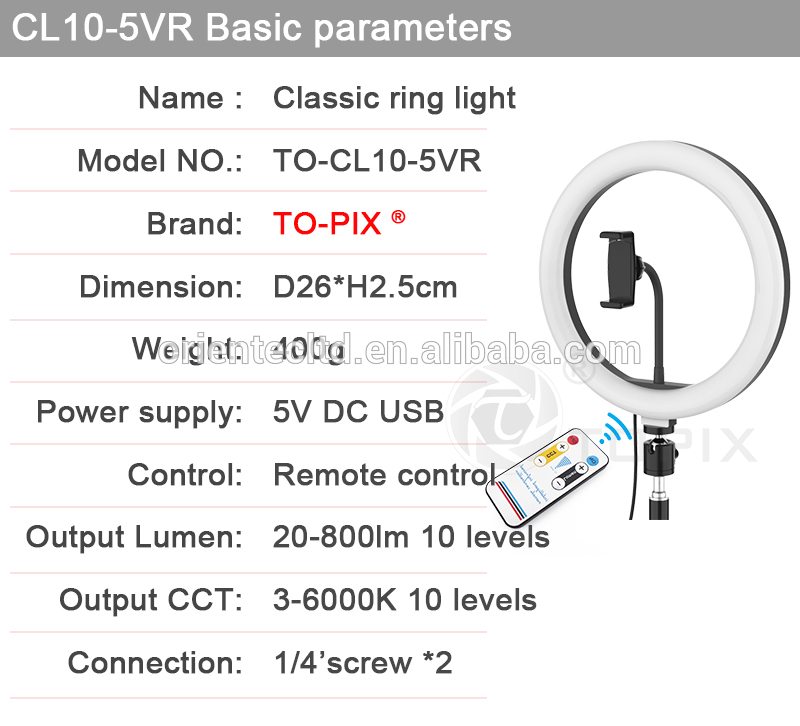 - 10 inch USB LED ring light