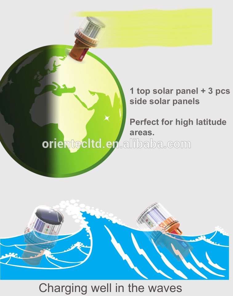 The Solar panel in different side. work well in high latitude area, in waves. Good choice ip68 solar beacon light