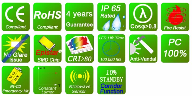 Details of 15W 4000K Movement sensor Ni-Cd battery led 2d bulkheads