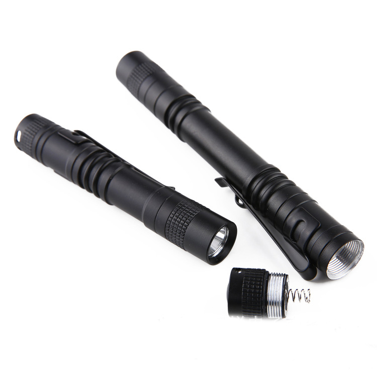 Pen Shape LED Hard Light Flashlight 133mm Long Black Mini Electric Torch