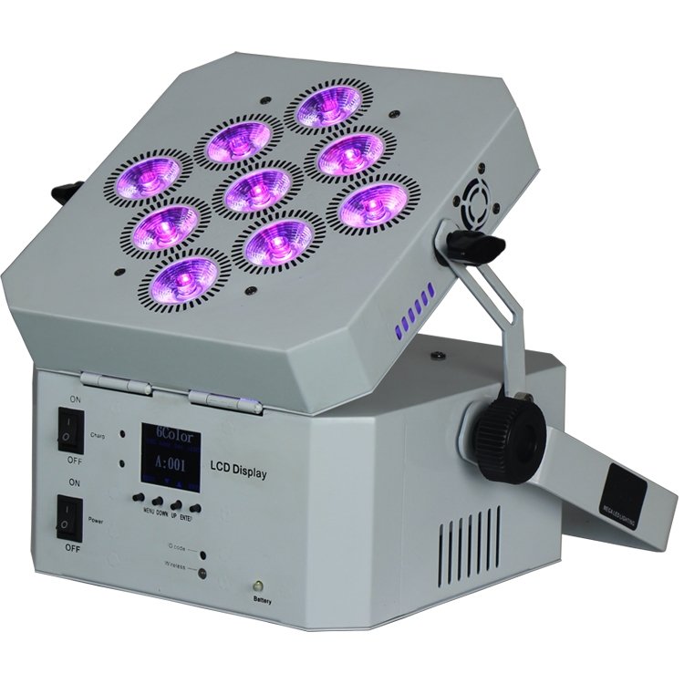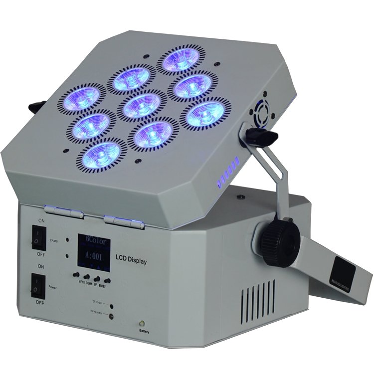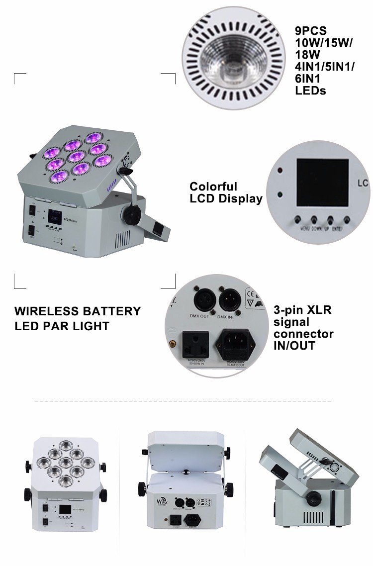 The WIRELESS BATTERY PAR 915 Plane Par Light is designed for indoor use to meet specific lighting needs and is evenly coloured. This product is available in 3 versions and has high brightness. WIRELESS BATTERY PAR 915 uses 9 LED beads. And built-in lithium-ion battery and 2.4G wireless DMX, full light can work for 4 hours. This product is available in 2 channel modes and is easy to use. Products can be used in weddings, parties, theaters, casinos, shopping centers, etc.