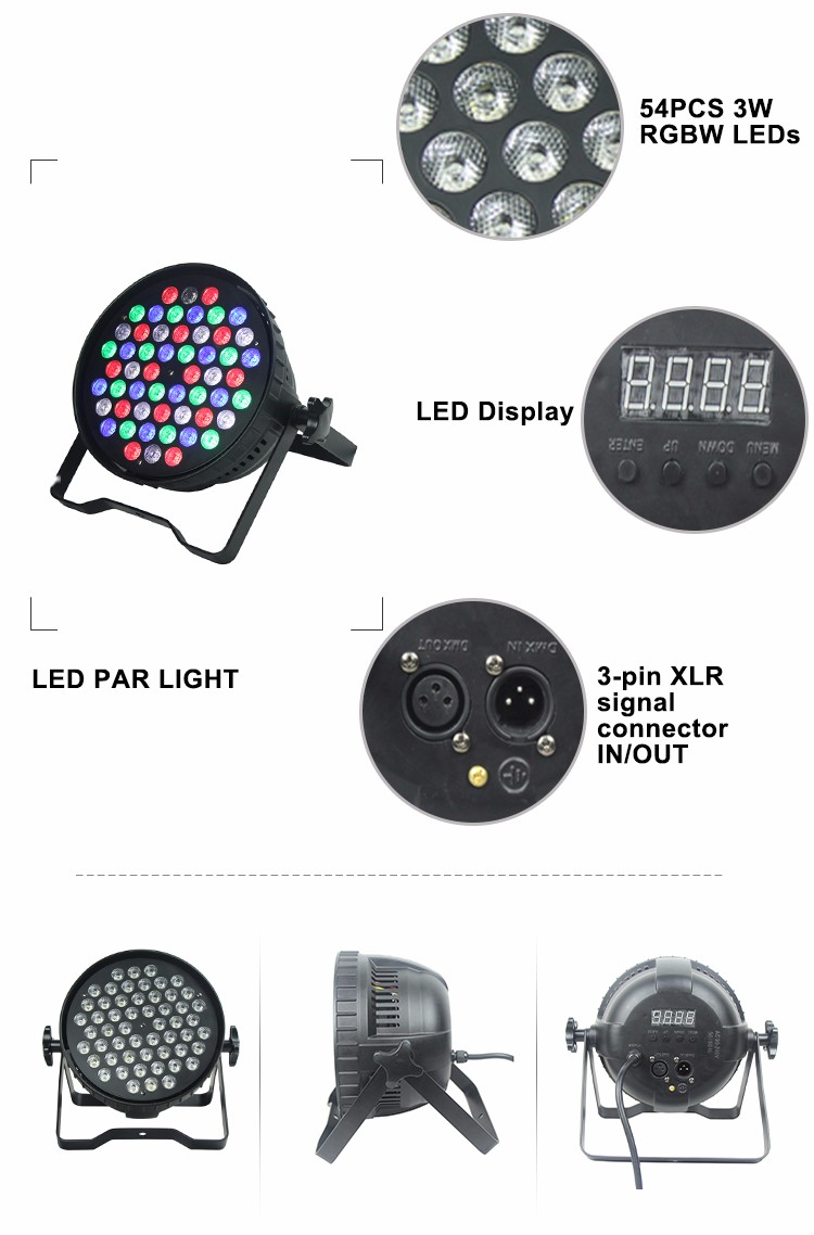 LEDPAR 543 is a high-brightness LED lamp, compact die-cast aluminum casing, which is more conducive to heat dissipation, high-bright LED lamp beads are arranged reasonably, high efficiency and perfect lighting effect, with master-slave control, DMX control , self-propelled program, sound control function. Products used in the stage, bars, nightclubs, etc.