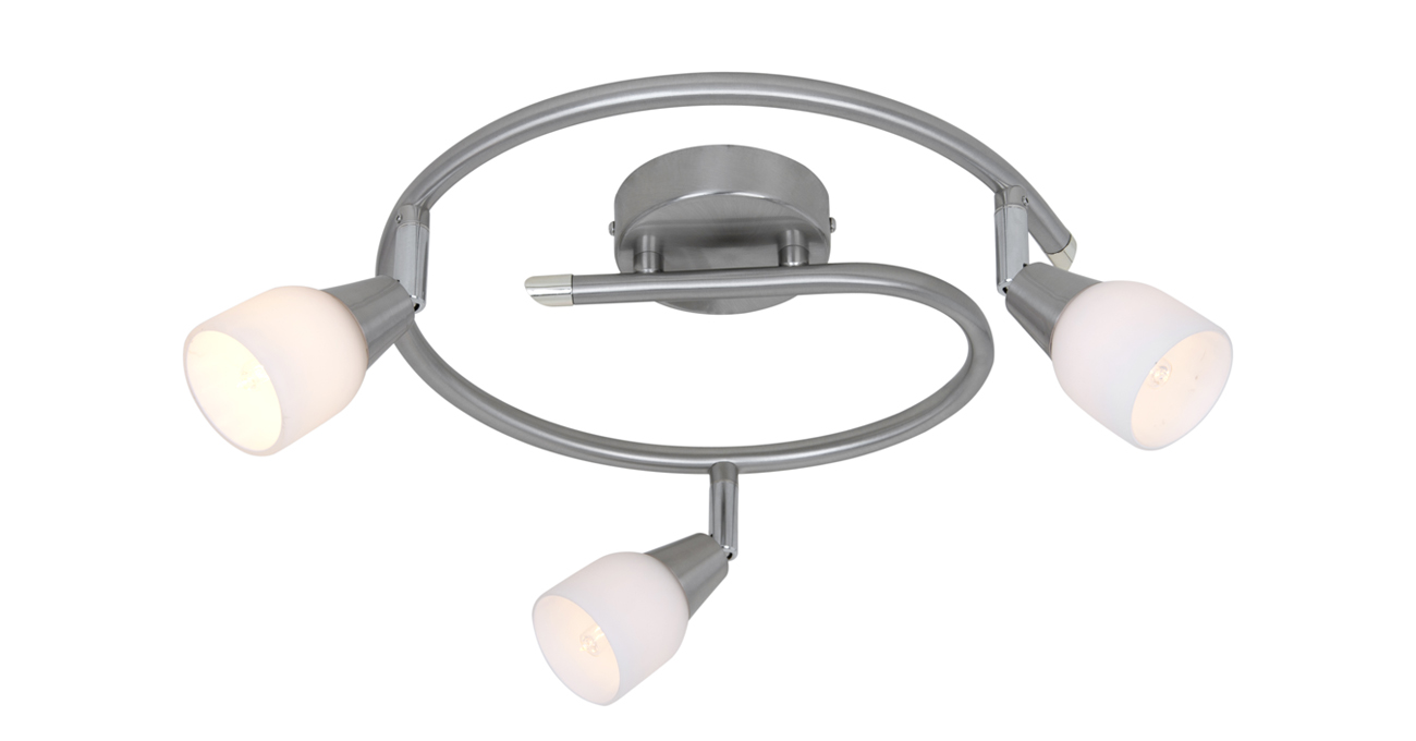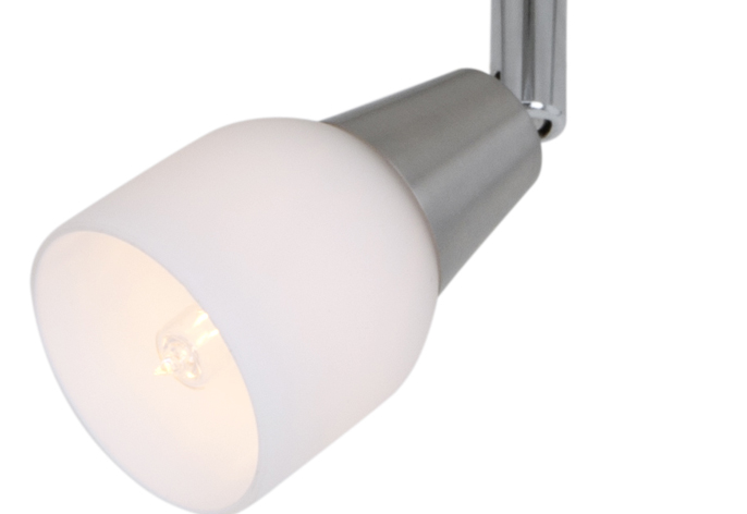 This “e” shaped spotlight with three heads is made of iron and glass. The color of it is sand nickel electroplated and with frosted glass. This spotlight can be used with halogen G9 bulbs or with new energy LED G9 bulbs. The heads of it can be adjusted, so you can change the light direction as you want. It is suitable for bed room, living room, corridor etc.
