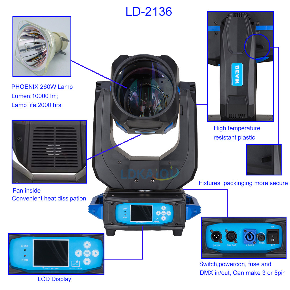 ◆ Prisms: 8-facet prism + Honeycomb prism (2 prisms can be superimposed to 40, can be two-way independent rotation) Frost/Atomization: independent frost effect, spot soft and natural
