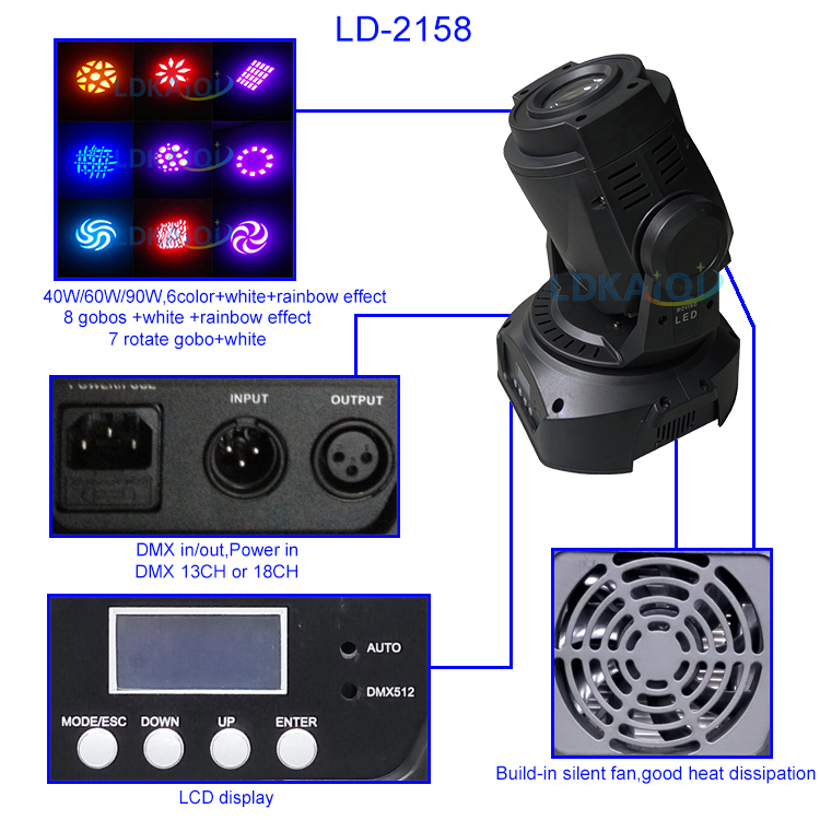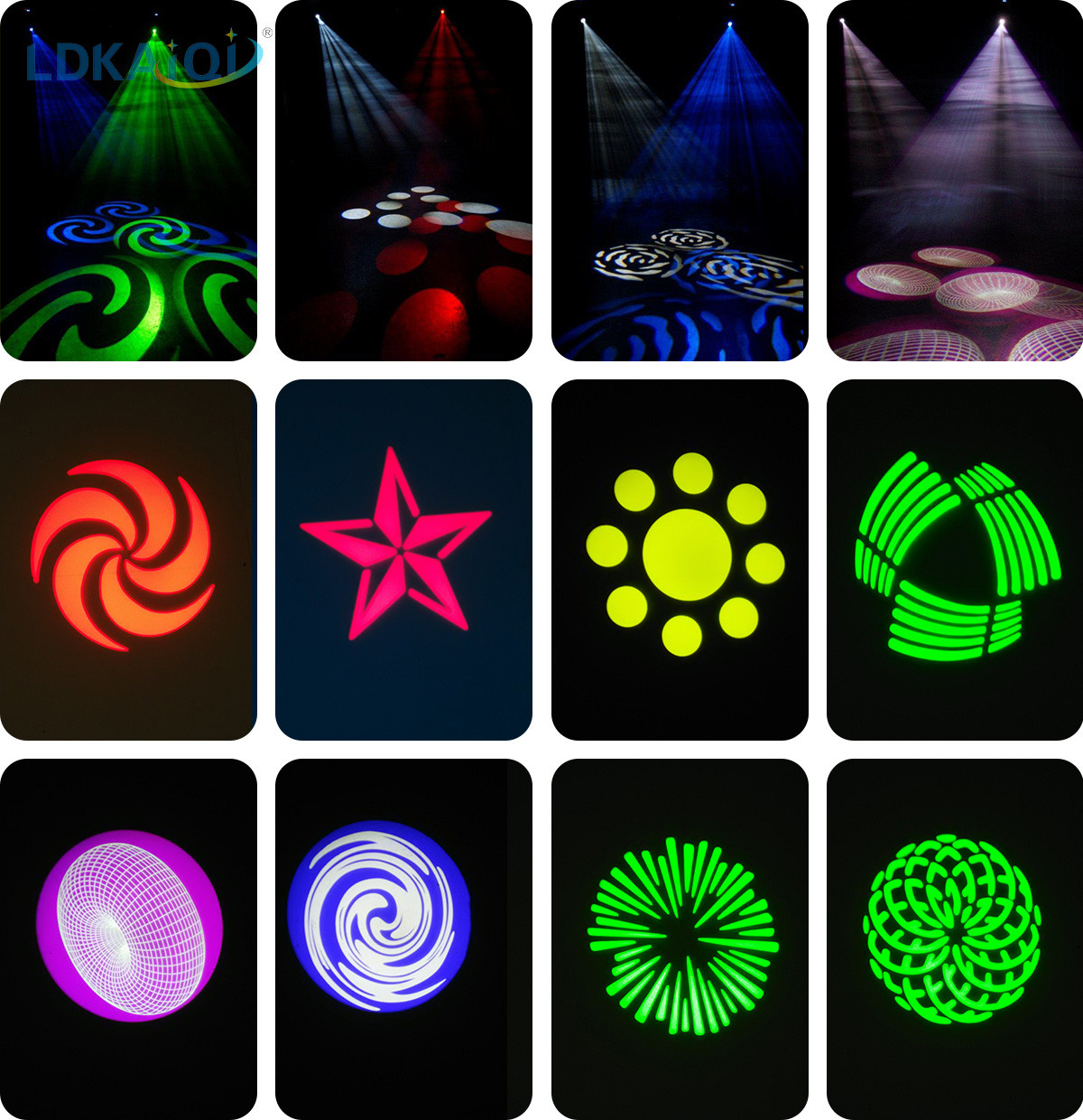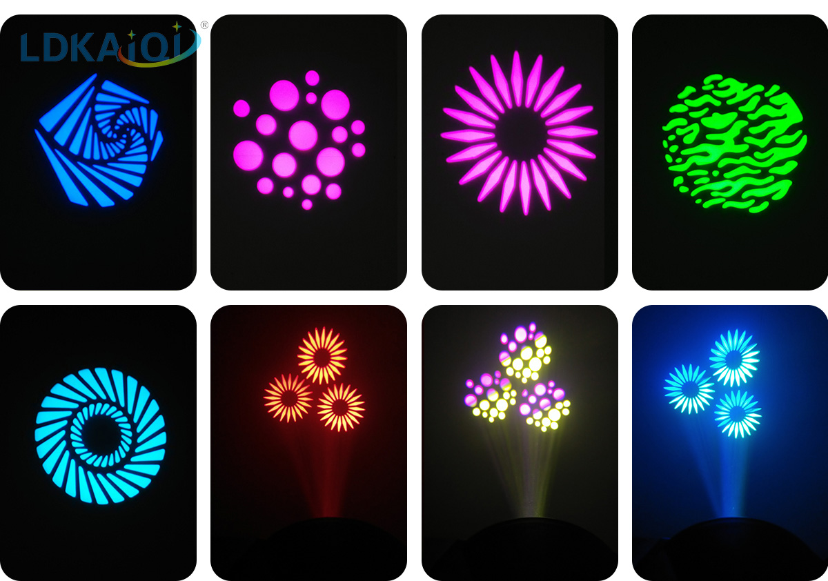 ◆ Rotation gobo: 6 gobos + white, can bidirectional speed change rotation