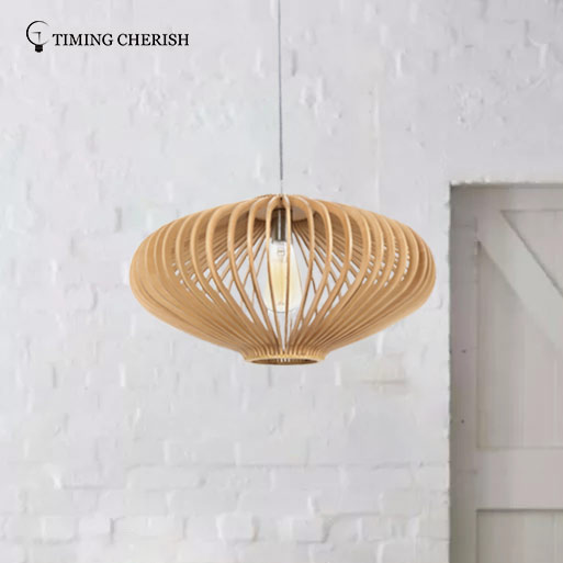 The Frisbee 1 Light Hanging Pendant features numerous wooden bars with the bulb surrounded, reflects a warm glow. For relaxing area or dining place, this unique design holds well.