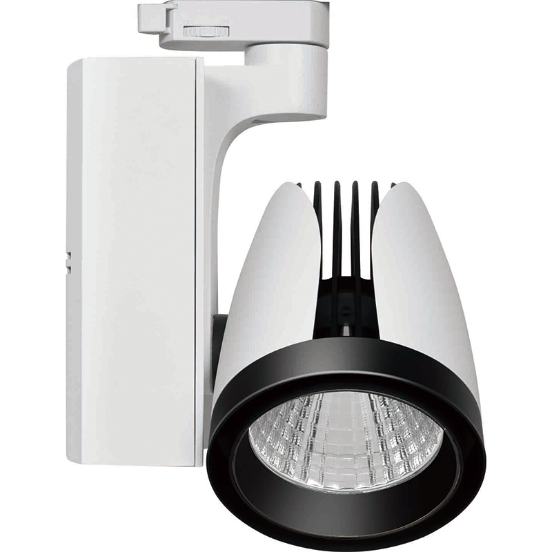 Track light made of die-cast aluminium; surface powder coated in white ,black or silver; COB (Chip on Board) technology for maximum efficiency; no multiple shadows; energy-efficient LEDs with very good colour rendering; binning initial ≤ 3 MacAdam; available in the light colours 3000K and 4000K; CRI ≥ 90; min. 80 % of the luminous flux after 50000 hours; BO 70 BASIC: high quality aluminium reflector with spherical facet finish; high-gloss anodised; precise radiation characteristic with four different beam angles; installed and exchanged without tools; adapter for toolless insertion or movement on a variety of 3-phase power tracks; optional DALI