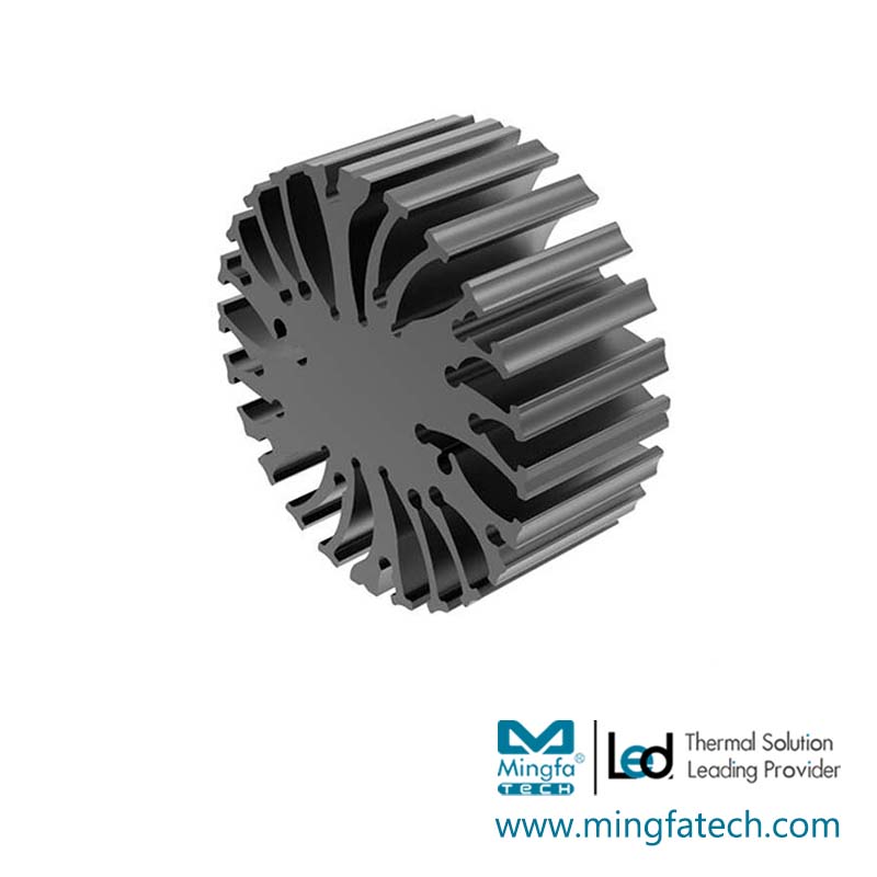 Description | LED Star Heatsink ø70mm x H50mm, Standard height 50mm, other heights on request. Designed for Spotlight and Downlight 1200~3000lm; Rth 2.20°C/w. Self-taping holes or custom mounting holes for Zhaga book 3 and book 11 LED modules. Extruded from highly conductive aluminum, standard finish - black anodized;Compatible all branded COBs. Compatible all branded COBs. |