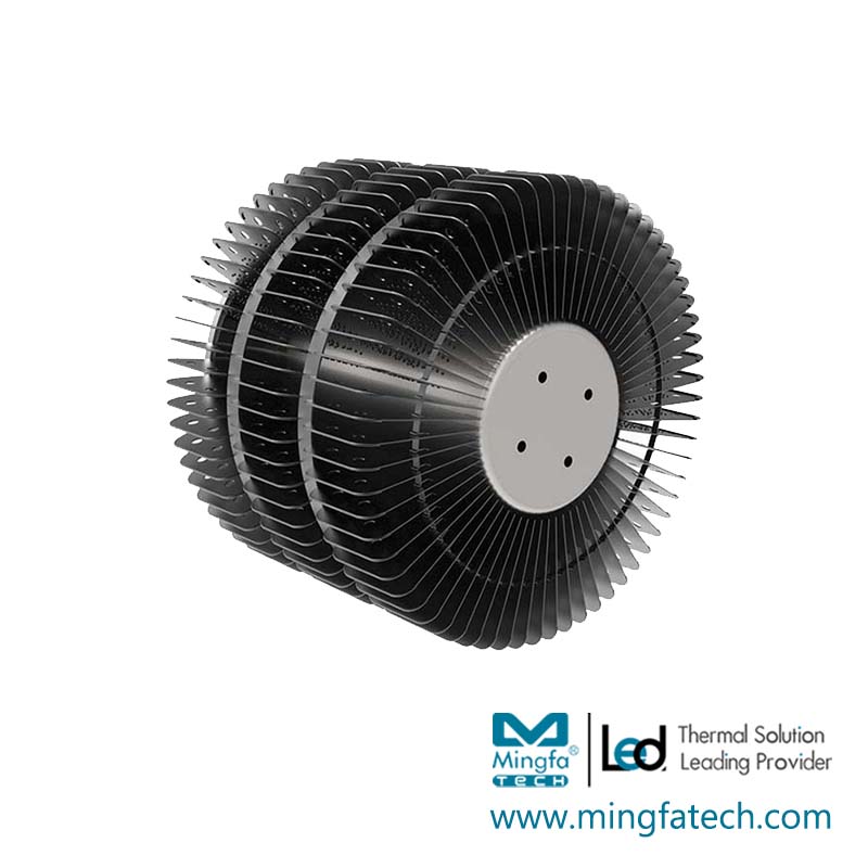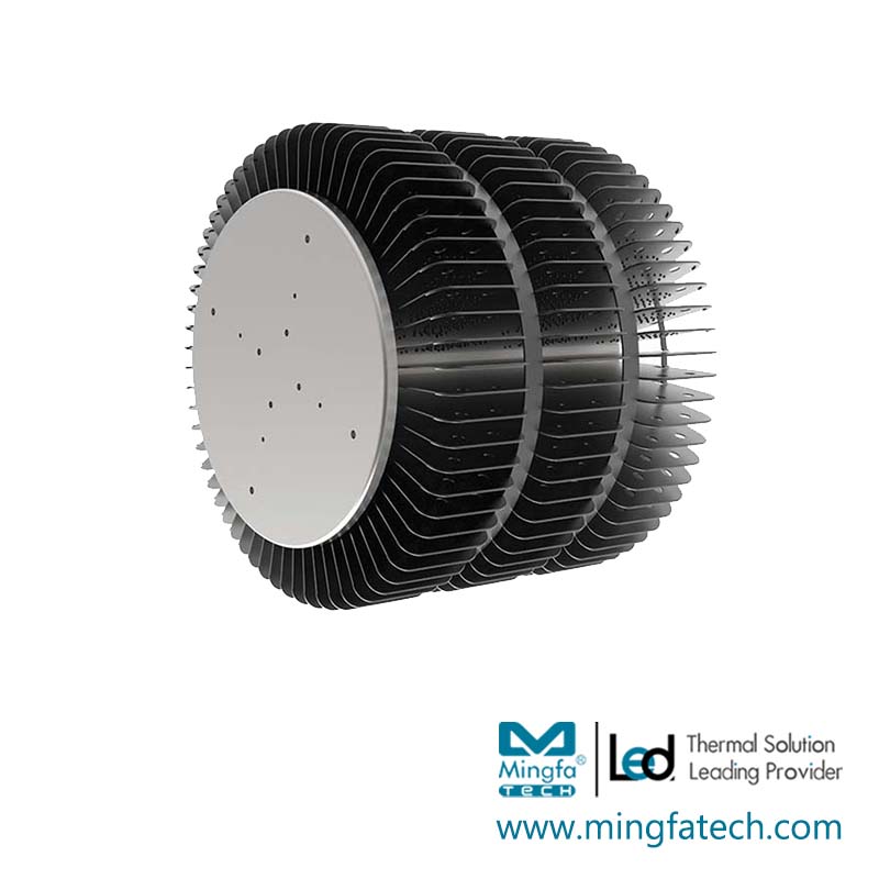 Description | LED Star Heatsink ø230mm x H195mm, Standard height 195mm, other heights on request. Designed for Hibay and Horticulture 12000~25000lm; Rth 0.25°C/w; Without hole or custom mounting holes for Zhaga book 3 modules; Extruded and Stamping from highly conductive aluminum, standard finish - clear anodized; Compatible all branded COBs. |