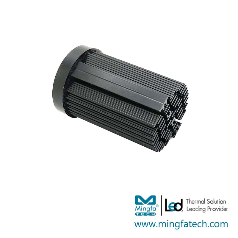 Description | LED Star Heatsink ø45mm x H68mm, Standard height 68mm, other heights on request. Designed for Hibay,floodlight and street light 300~1600lm; Rth 4.76°C/w; Self-taping holes or custom mounting holes for Zhaga book 3 and book 11 LED modules; Extruded from highly conductive aluminum, standard finish - black anodized; Compatible all branded COBs and various SMDs. |