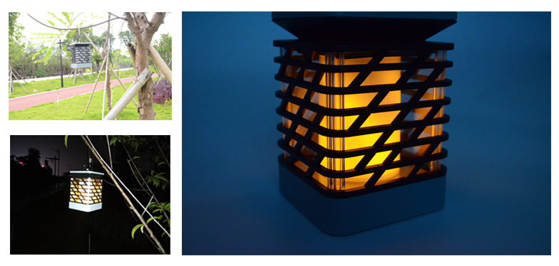 Used As Pathway Lights:Hanging this solar flame lanterns on the shepherd hooks and stake them into ground around the pathway, it will give a warm welcome to your guests.The solar flame lights create a romantic landscape that changes the sparkling flame for your party, barbecue, and camping night.